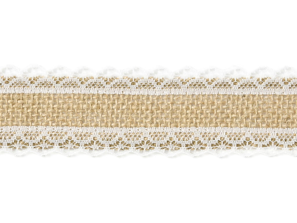 Charmant ruban en jute orné de dentelle blanche. Idéal pour mariages, emballages ou décorations.